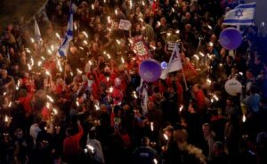 FILE PHOTO: Israelis protest against Prime Minister Benjamin Netanyahu’s new right-wing coalition and its proposed judicial reforms to reduce powers of the Supreme Court, in Tel Aviv, Israel January 21, 2023. REUTERS/Corinna Kern/File Photo