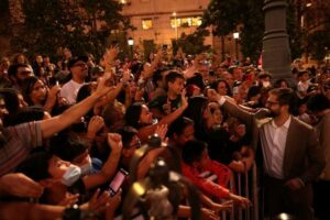 Chile’s President Gabriel Boric waves to supporters during Santiago a Mil International Theatre Festival’s kick off in Santiago, Chile, January 3, 2023. REUTERS/Ivan Alvarado