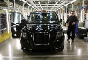 A worker walks along the TX electric taxi production line inside the LEVC (London Electric Vehicle Company) factory in Coventry, Britain, January 18, 2023. REUTERS/Phil Noble