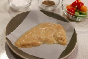 A view shows a raw piece of cultivated chicken breast created at the UPSIDE Foods plant, where lab-grown meat is cultivated, in Emeryville, California, U.S. January 11, 2023. REUTERS/Peter DaSilva