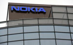FILE PHOTO: A view of the logo at the headquarters of the Finnish telecoms company Nokia in Espoo, Finland March 16, 2021. Lehtikuva/Heikki Saukkomaa via REUTERS
