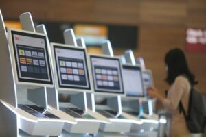 FILE PHOTO: A passenger looks at a screen at Berlin Brandenburg Airport (BER), in Schoenefeld near Berlin, Germany, July 7, 2022. REUTERS/Michele Tantussi
