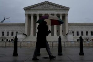 FILE PHOTO: A person walks in front of the U.S. Supreme Court building in Washington, U.S. January 17, 2023. REUTERS/Jonathan Ernst/File Photo