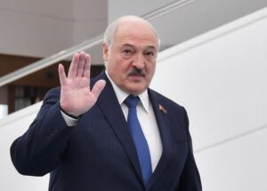 FILE PHOTO: Belarusian President Alexander Lukashenko greets participants during the summit of leaders of the Commonwealth of Independent States (CIS) in Astana, Kazakhstan October 14, 2022. REUTERS/Turar Kazangapov