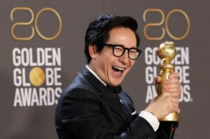 FILE PHOTO: Ke Huy Quan poses with his award for Best Supporting Actor in a Motion Picture for “Everything Everywhere All at Once” at the 80th Annual Golden Globe Awards in Beverly Hills, California, U.S., January 10, 2023. REUTERS/Mario Anzuoni
