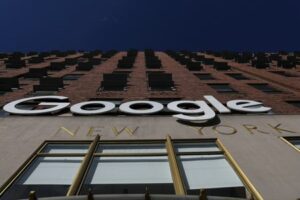 FILE PHOTO: A Google LLC logo is seen at the Google offices in the Chelsea section of New York City, U.S., January 20, 2023. REUTERS/Shannon Stapleton