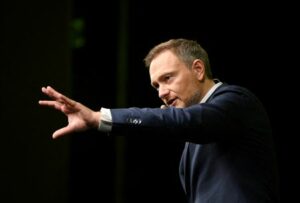 FILE PHOTO: Free Democratic Party (FDP) leader and German Finance Minister Christian Lindner gestures as he speaks during the traditional FDP Epiphany meeting in Stuttgart, Germany, January 6, 2023. REUTERS/Andreas Gebert/File Photo