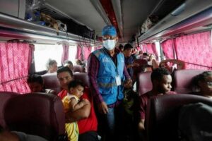 FOTO DE ARCHIVO. Un funcionario del Gobierno revisa los documentos de migrantes que viajan a Estados Unidos desde la frontera de Guatemala. Tegucigalpa, Honduras September 29, 2022. REUTERS/Fredy Rodriguez