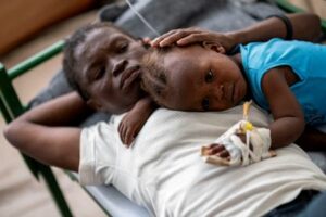 FILE PHOTO: Karina Joseph, 19, comforts her 2-year-old child Holanda Sineus as she receives treatment for cholera in a tent at a Doctors Without Borders hospital in Cite Soleil, a densely populated commune of Port-au-Prince, Haiti October 15, 2022. REUTERS/Ricardo Arduengo/File Photo