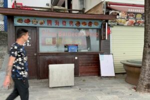 A man walks past closed restaurants at a beach during the Spring Festival and Lunar New Year holiday in Sanya, Hainan province, China January 23, 2023. REUTERS/Alessandro Diviggiano