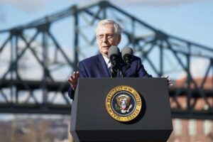 U.S. Senate Republican Leader Mitch McConnell (R-KY) speaks during an event to tout the new Brent Spence Bridge over the Ohio River between Covington, Kentucky and Cincinnati, Ohio near the bridge in Covington, Kentucky, U.S., January 4, 2023. REUTERS/Kevin Lamarque