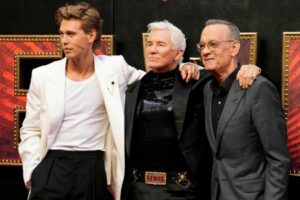 Foto de archivo del director de “Elvis” Baz Luhrmann con los actores Austin Butler y Tom Hanks en la premier del filme en Londres