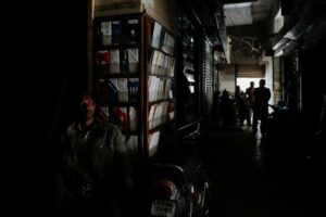 A man sits outside his shop during a country-wide power breakdown in Karachi, Pakistan January 23, 2023. REUTERS/Akhtar Soomro