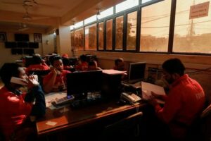 Volunteers of the Edhi Foundation, a non-profit social welfare programme, work at a communication and control room during a country-wide power breakdown in Karachi, Pakistan January 23, 2023. REUTERS/Akhtar Soomro
