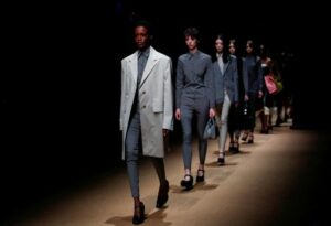 FILE PHOTO: Models present creations from the Prada Spring/Summer 2023 collection during Milan Fashion Week in Milan, Italy, September 22, 2022. REUTERS/Alessandro Garofalo/File Photo