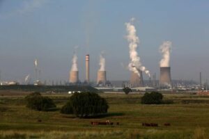 Cooling towers of South African petro-chemical company Sasol’s synthetic fuel