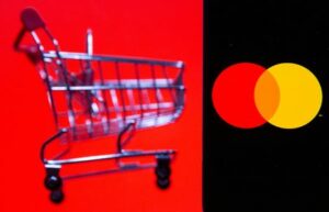 Smartphone with Master Card logo is placed near toy shopping cart in this illustration taken, July 15, 2021. REUTERS/Dado Ruvic/Illustration