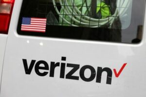 FILE PHOTO: A Verizon logo is seen on a van in Manhattan, New York City, U.S., November 22, 2021. REUTERS/Andrew Kelly/File Photo