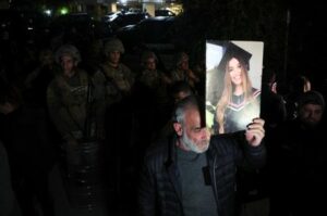 A member of the family of one of the victims of the 2020 Beirut port explosion, attends a protest against Ghassan Oweidat Lebanon’s top public prosecutor, near his residence in Baabda, Lebanon January 25, 2023. REUTERS/Mohamed Azakir
