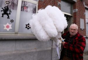 Daniel Masse, a “Gilles of Binche” performer, collects ostrich feather hats at the workshop of Louis Kersten, 82, artisan and renter of costumes for “Gilles of Binche” before the Binche carnival, a UNESCO World Heritage event, in his workshop in Binche, Belgium January 24, 2023. REUTERS/Yves Herman