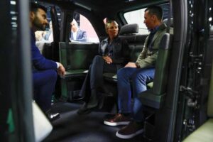 U.S. Energy Secretary Jennifer Granholm and White House National Climate Advisor Ali Zaidi view an electric Canoo van on a visit to the Washington Auto Show in Washington, U.S. January 25, 2023. REUTERS/Jonathan Ernst
