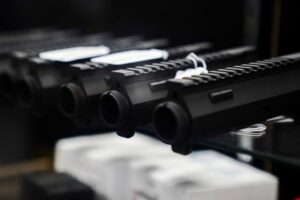 FILE PHOTO: AR-15 upper receivers are displayed for sale at Firearms Unknown, a gun store in Oceanside, California, U.S., April 12, 2021. REUTERS/Bing Guan/File Photo