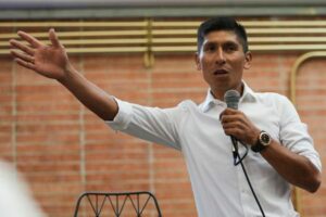 El ciclista colombiano Nairo Quintana habla durante una conferencia de prensa en Bogotá, Colombia, 25 de enero, 2023. REUTERS/Luisa González