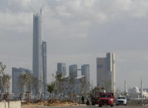 Vehicles drive on a road next to the construction site of the Iconic Tower skyscraper in the Central Business District (CBD), which is being built by China State Construction Engineering Corp (CSCEC) in the New Administrative Capital (NAC) east of Cairo, Egypt January 15, 2023. REUTERS/Amr Abdallah Dalsh/File Photo