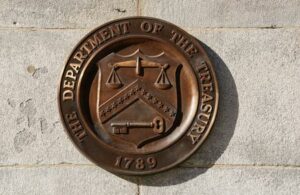 Un sello de bronce del Departamento del Tesoro se muestra en el edificio del Tesoro en Washington, Estados Unidos. 20 de enero, 2023. REUTERS/Kevin Lamarque/Archivo