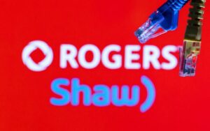 Ethernet cables are seen in front of Rogers and Shaw Communications logos in this illustration taken, July 8, 2022. REUTERS/Dado Ruvic/Illustrations