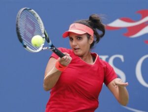 FILE PHOTO: Sania Mirza of India returns a forehand as she and playing partner Martina Hingis of Switzerland (not pictured) face Casey Dellacqua of Australia and Yaroslava Shvedova of Kazakhstan in the women’s doubles final match at the U.S. Open Championships tennis tournament in New York, September 13, 2015. REUTERS/Eduardo Munoz