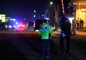 Police officers work near a train station after an incident involving a knife attack took place on a train travelling between Kiel and Hamburg, in Brokstedt, Germany, January 25, 2023. REUTERS/Fabian Bimmer