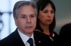 U.S. Secretary of State Antony Blinken looks on during a meeting with Turkey’s Foreign Minister Mevlut Cavusoglu at the State Department in Washington, U.S., January 18, 2023. REUTERS/Leah Millis/Pool
