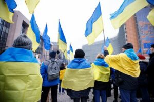 Protesters gather in support of Ukraine during a meeting of European Union (EU) Foreign Ministers in Brussels, Belgium January 23, 2023. REUTERS/Johanna Geron