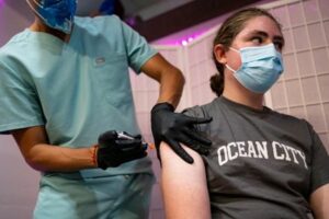 FILE PHOTO: Sean Bagley, 14, receives the Pfizer-BioNTech coronavirus disease (COVID-19) booster vaccine targeting BA.4 and BA.5 Omicron sub variants at Skippack Pharmacy in Schwenksville, Pennsylvania, U.S., September 8, 2022. REUTERS/Hannah Beier