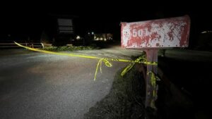 Police tape blocks off a crime scene near where several victims were found dead in a shooting in Half Moon Bay, California, U.S. January 23, 2023. REUTERS/Nathan Frandino
