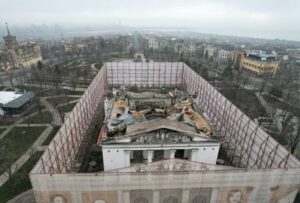 FILE PHOTO: A view shows a fenced theatre building destroyed in the course of Russia-Ukraine conflict in Mariupol, Russian-controlled Ukraine, December 24, 2022. REUTERS/Pavel Klimov TPX IMAGES OF THE DAY