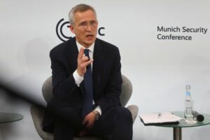 FILE PHOTO: NATO Secretary General Jens Stoltenberg speaks, during the Munich Security Conference (MSC) in Munich, Germany February 18, 2023. REUTERS/Wolfgang Rattay