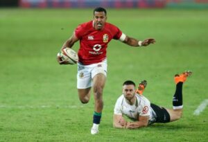 FILE PHOTO: Rugby Union – Lions Tour – Sharks v British and Irish Lions – Loftus Versfeld Stadium, Pretoria, South Africa – July 10, 2021 British and Irish Lions’ Anthony Watson in action with Sharks’ Cameron Wright REUTERS/Siphiwe Sibeko