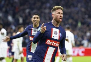 Foto de archivo del defensor del Paris St Germain Sergio Ramos celebrando trsa marcar ante Olympique de Marsella por la Copa de Francia