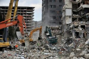 Workers clean the rubble of a collapsed building in the aftermath of a deadly earthquake in Antakya, Hatay province, Turkey, February 21, 2023. REUTERS/Thaier Al-Sudani
