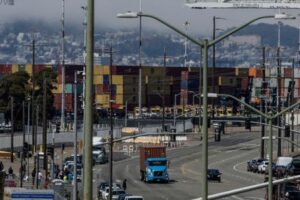 FILE PHOTO: Shipping containers are seen at a terminal inside the Port of Oakland as truck drivers continue protesting against California’s new law known as AB5, in Oakland, California, U.S., July 21, 2022. REUTERS/Carlos Barria