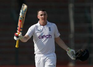 FILE PHOTO: Cricket – Third Test – Pakistan v England – National Stadium Karachi, Pakistan – December 18, 2022. England’s Harry Brook celebrates scoring his century. REUTERS/Akhtar Soomro