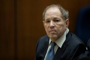 FILE PHOTO: Former film producer Harvey Weinstein appears in court at the Clara Shortridge Foltz Criminal Justice Center in Los Angeles, California, USA, 04 October 2022. Harvey Weinstein was extradited from New York to Los Angeles to face sex-related charges. Etienne Laurent/Pool via REUTERS/