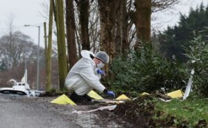 Forensic officer from PSNI works at the scene of the
