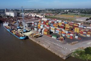 Foto de archivo: imagen de barcos y containers en el puerto de Rosario, en la provincia de Santa Fe, desde donde se exportan la mayor parte de las exportaciones agrĂcolas de Argentina. 9 mar, 2023. REUTERS/Agustin Marcarian