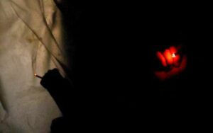 Ukrainian servicemen from 28th mechanised brigade having a cigarette as they take cover from incoming fire in the bunker of their trenches incoming fire at the frontline, amid Russia?s attack on Ukraine in the region of Bakhmut, Ukraine, April 5, 2023. REUTERS/Kai Pfaffenbach