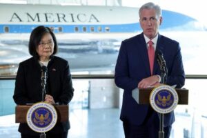 Taiwan’s President Tsai Ing-wen and the U.S. Speaker of the House Kevin McCarthy hold a news conference following a meeting at the Ronald Reagan Presidential Library, in Simi Valley, California, U.S. April 5, 2023. REUTERS/David Swanson