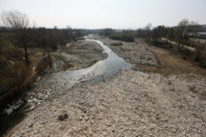 FILE PHOTO: A view shows Gesso’ dry riverbed, as Italy’s large reservoirs of freshwater have dried up due to the worst drought in the last 70 years, in Cuneo, Italy March 22, 2023. REUTERS/Claudia Greco