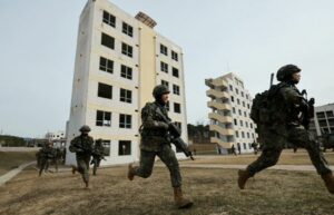 FILE PHOTO: South Korean soldiers take part in a joint military drill which is a part of the Freedom Shield joint military exercise between South Korea and U.S., at a military training field near the demilitarized zone separating the two Koreas in Paju, South Korea, March 16, 2023. Yonhap via REUTERS/File Photo